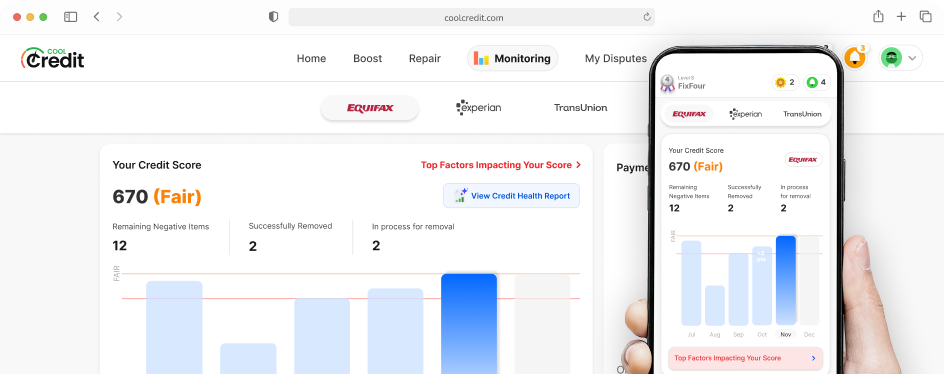 CoolCredit tracks, reviews, analyzes every aspect of your credit report. The AI-assisted app vigilantly tracks changes, keeping you informed and equipped to make smart financial decisions.